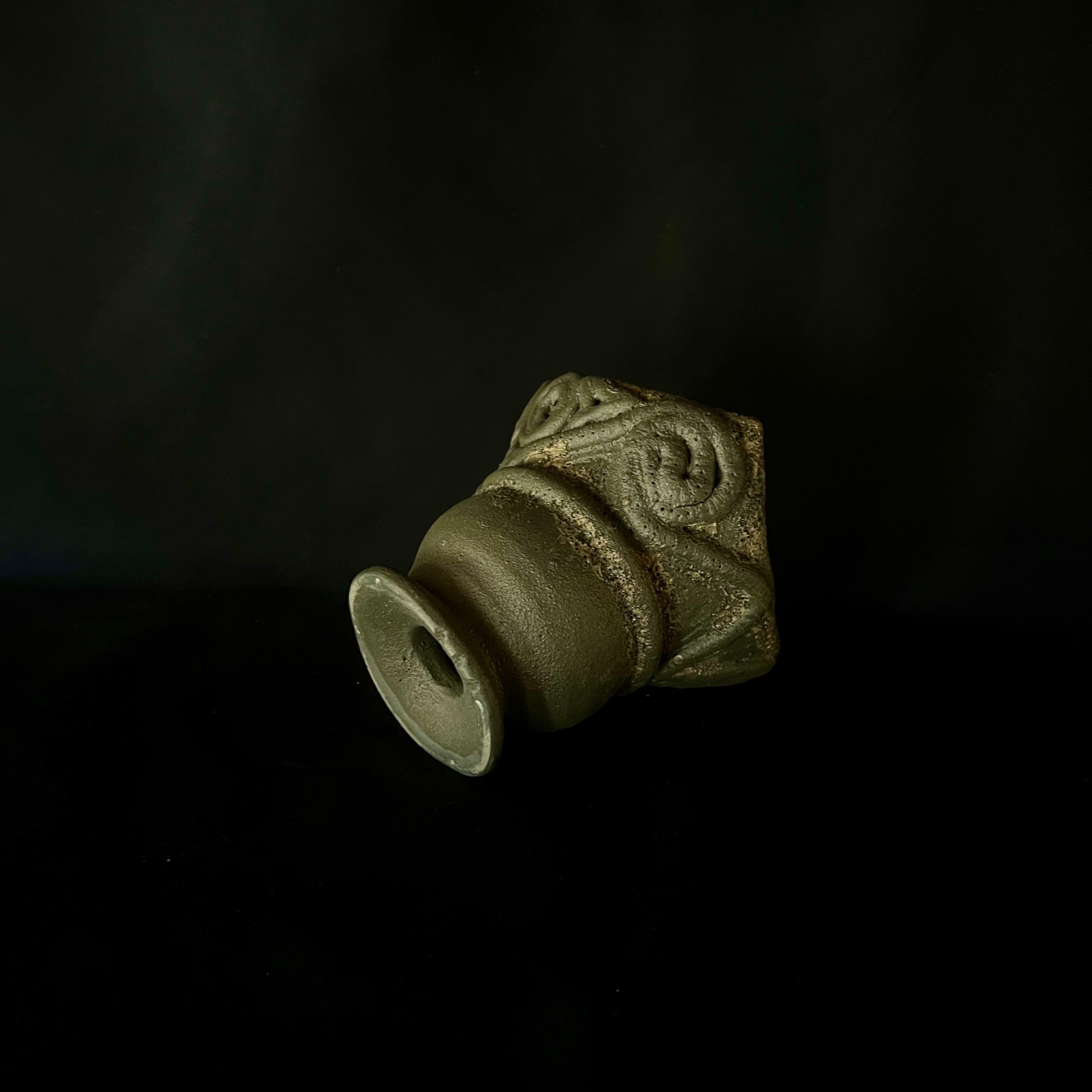 装飾的なパーツと部分的なクレーターがアクセントとなり、他にはない独特の風合いを持ちシャープでありながら温もりを感じさせるデザインがポイントです。
