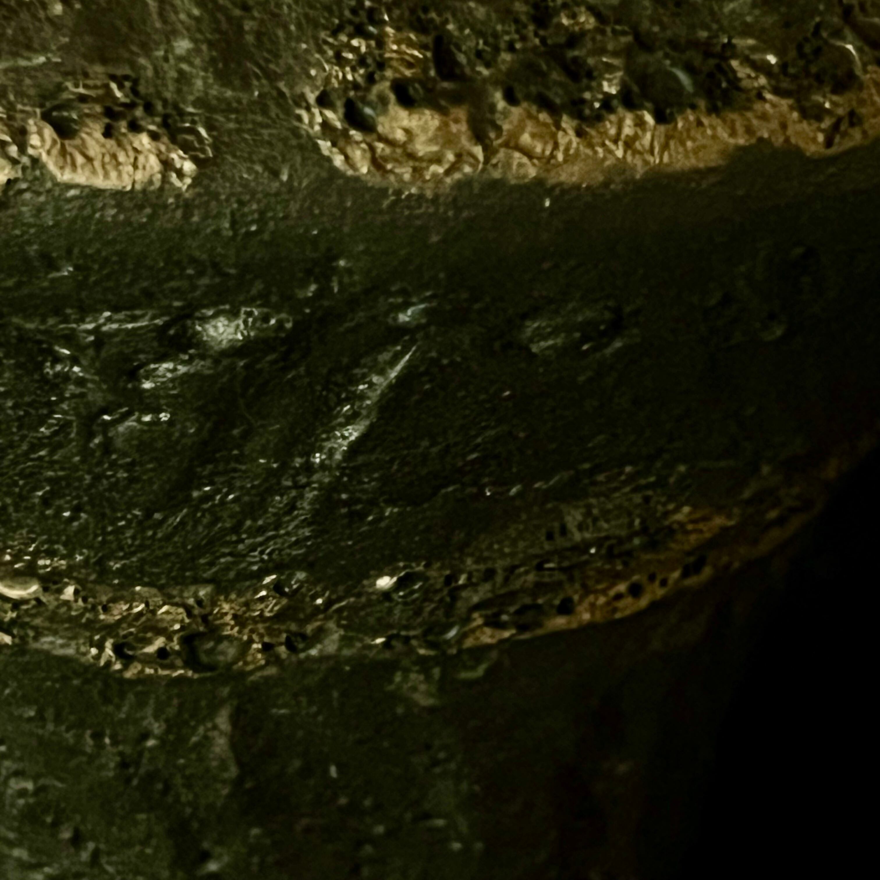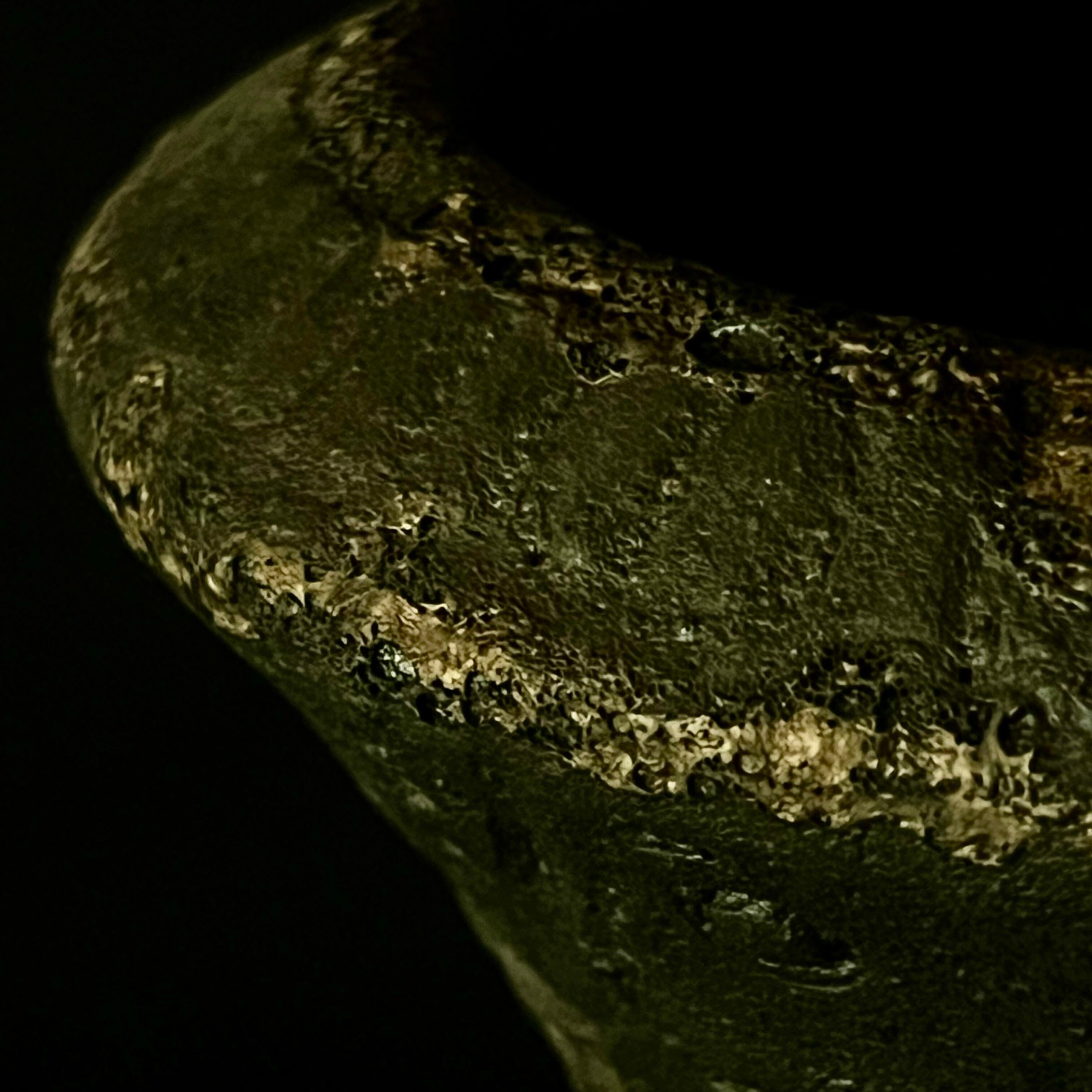 装飾的なパーツと部分的なクレーターがアクセントとなり、他にはない独特の風合いを持ちシャープでありながら温もりを感じさせるデザインがポイントです。