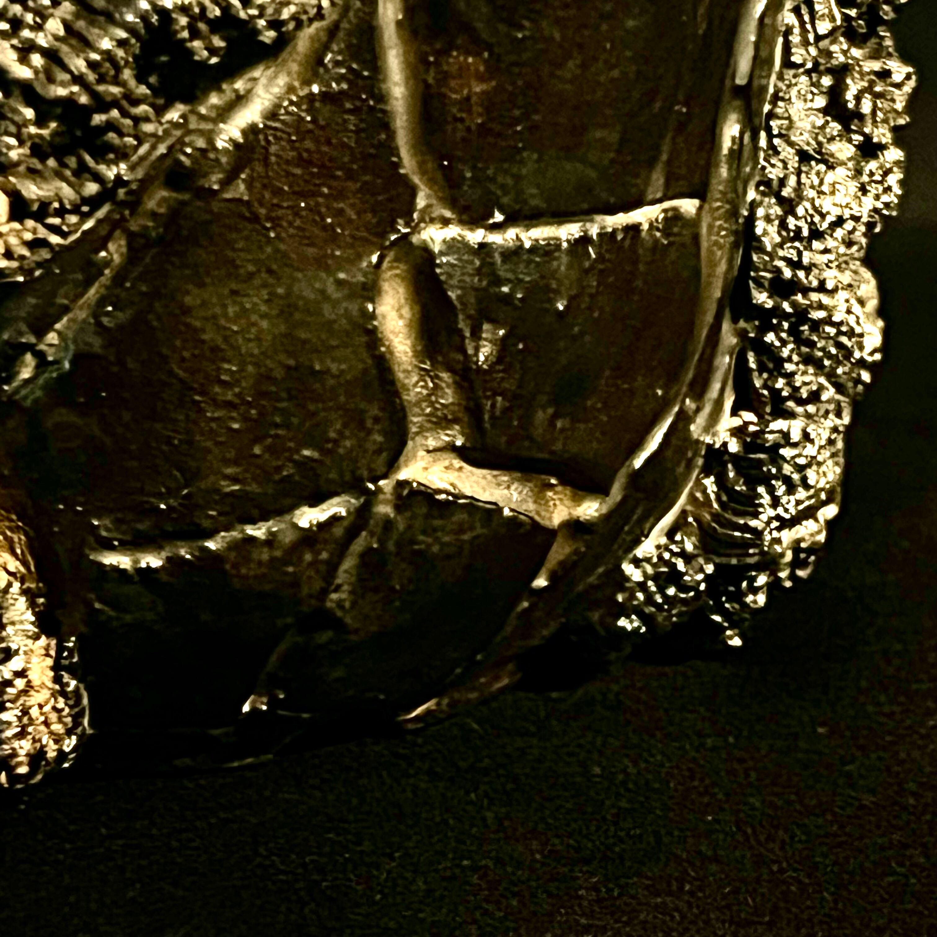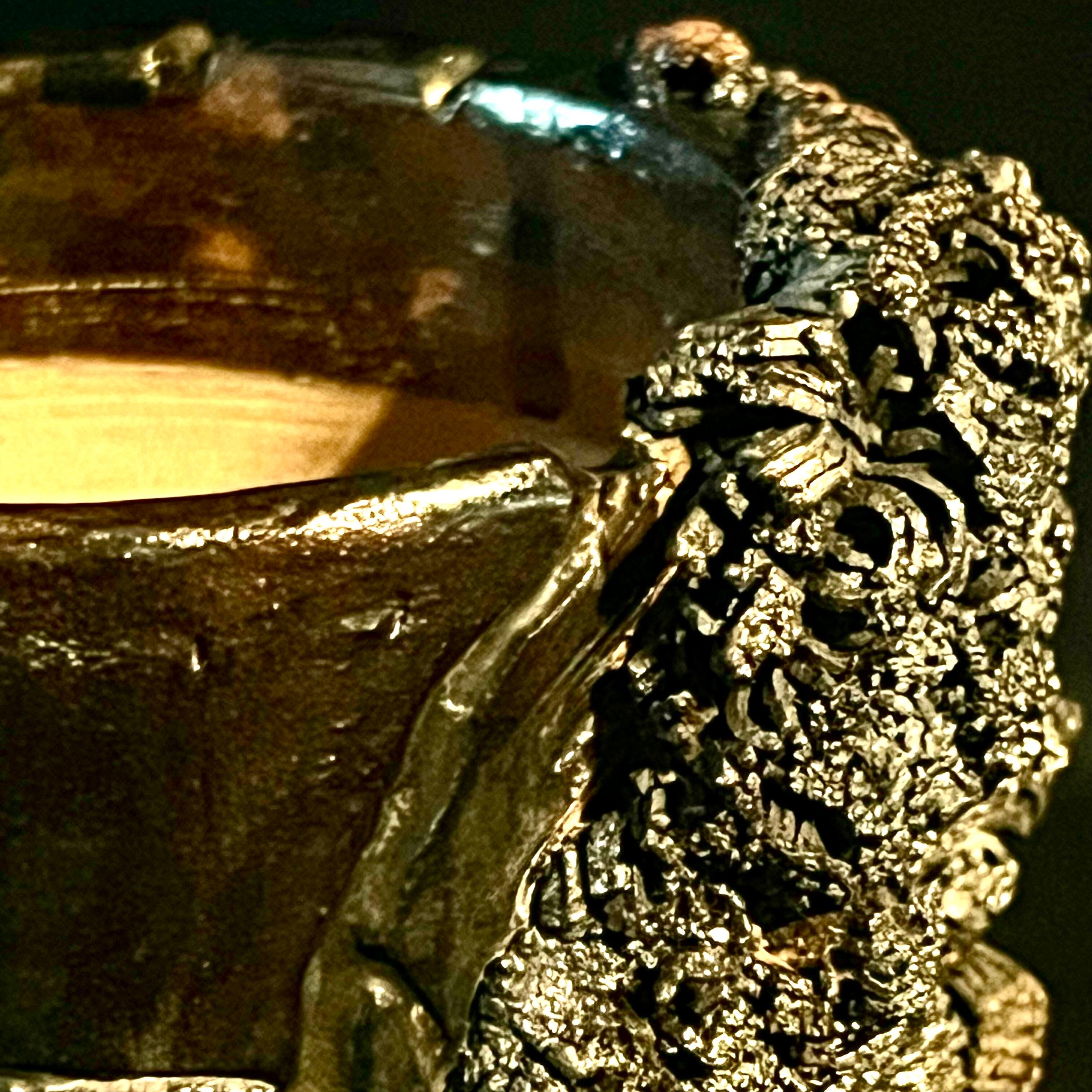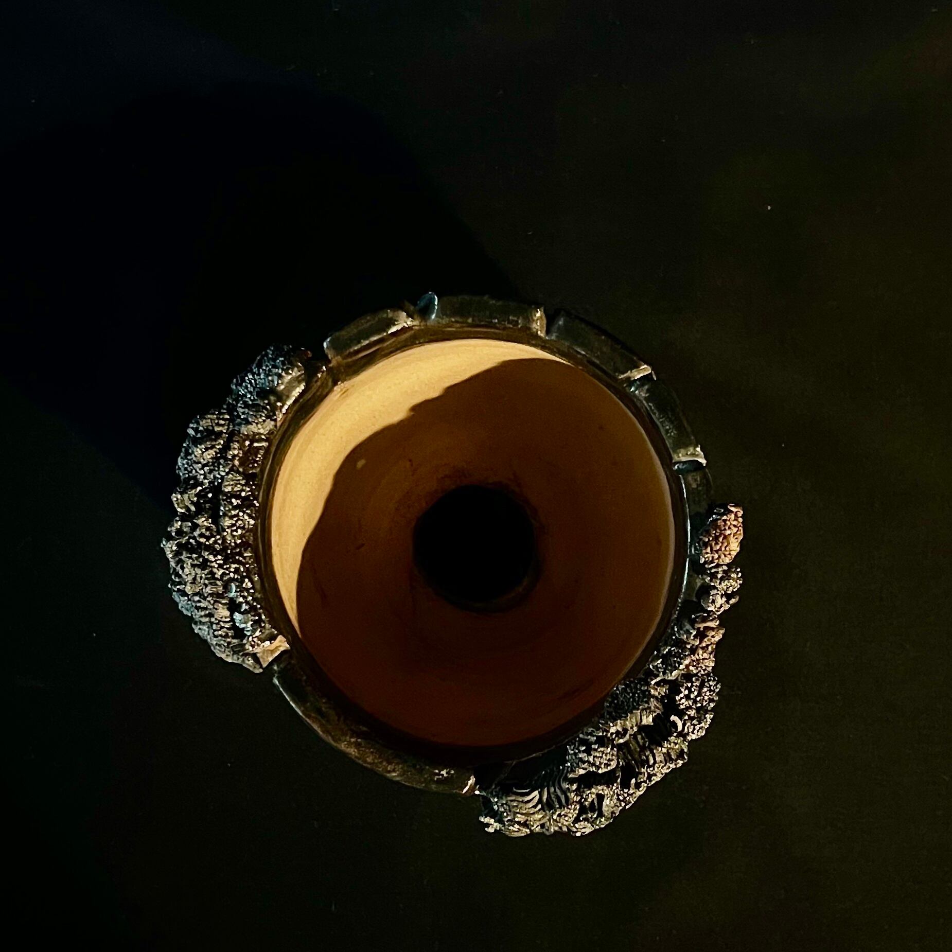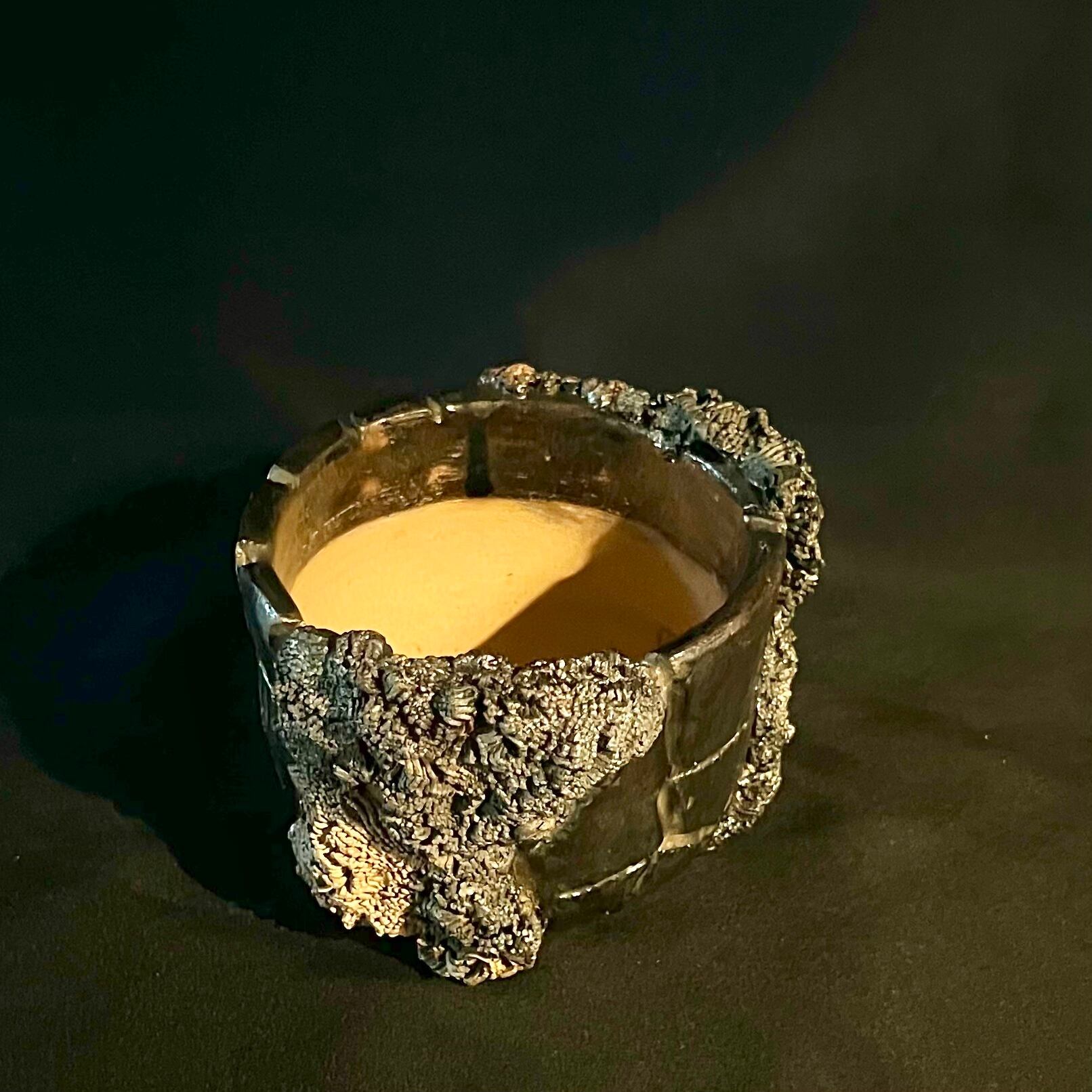 自然の壮大さを表現したメタリックな金属的な岩のボディと、そこで繁殖する苔がコラボする風景を切り取った鉢。