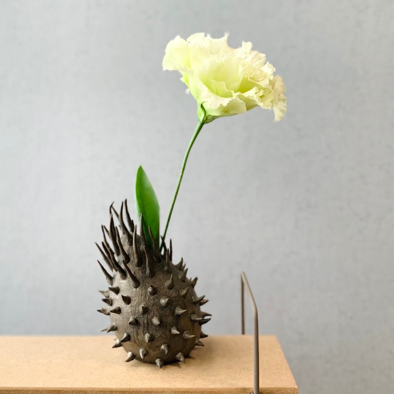人や動物にくっつく細いトゲの種子(オナモミ)をモチーフにした一輪挿しです。