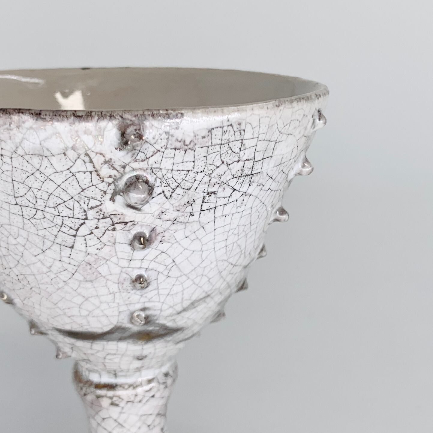 外側が銀彩を施し、内側は乳白釉で外側は縦にタネが並んでいます。