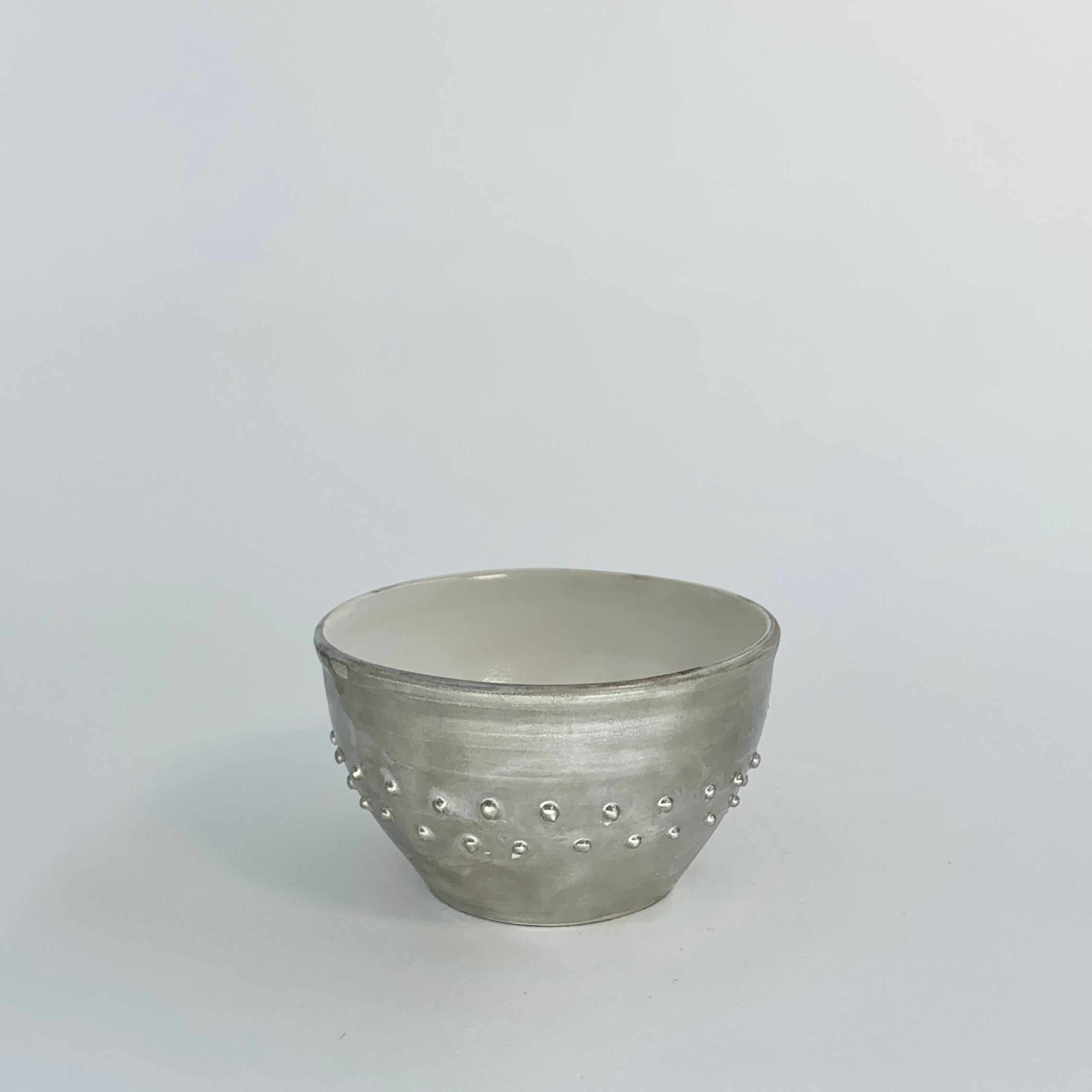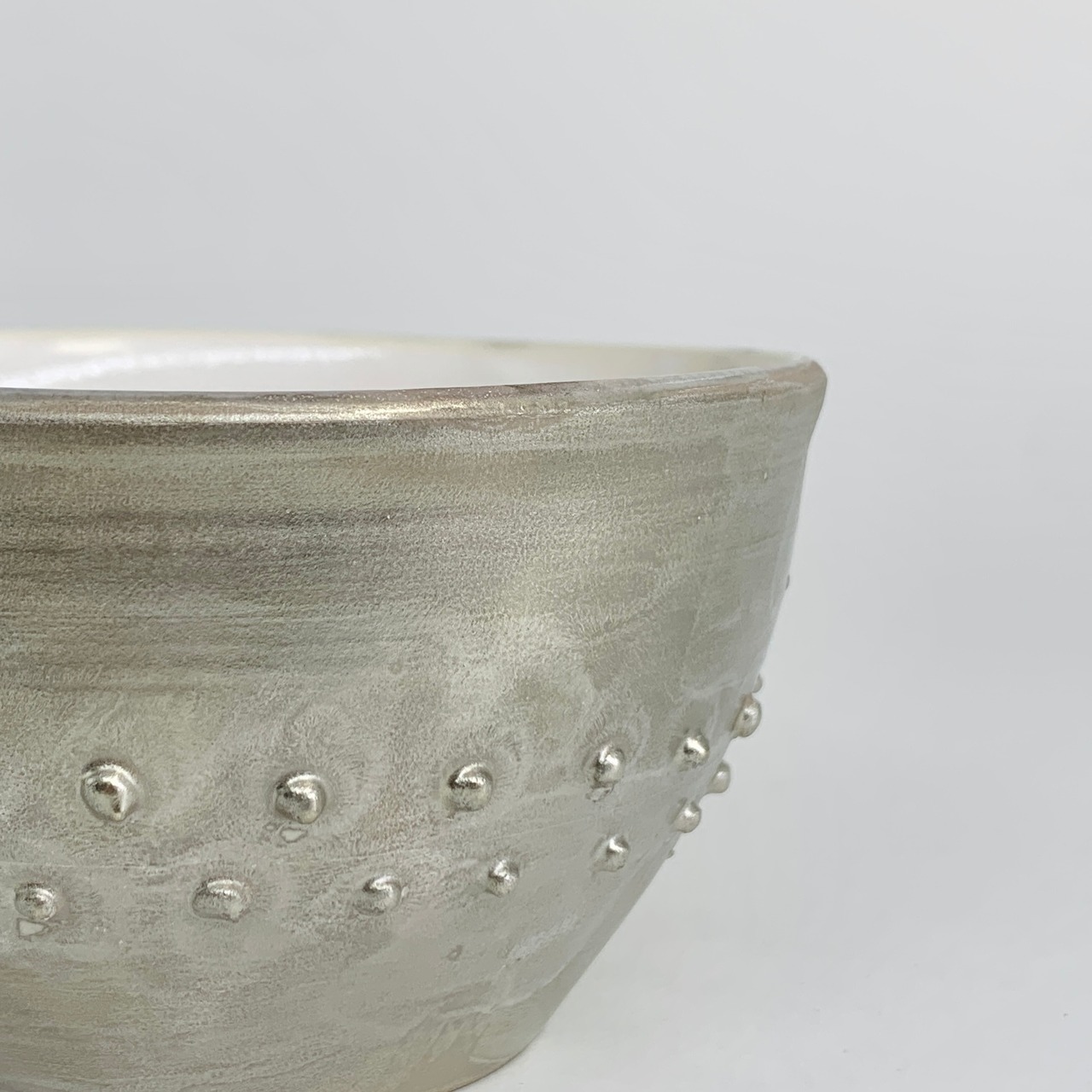 内側が乳白色、外側に種子が並ぶプラチナシルバーのボウルです。