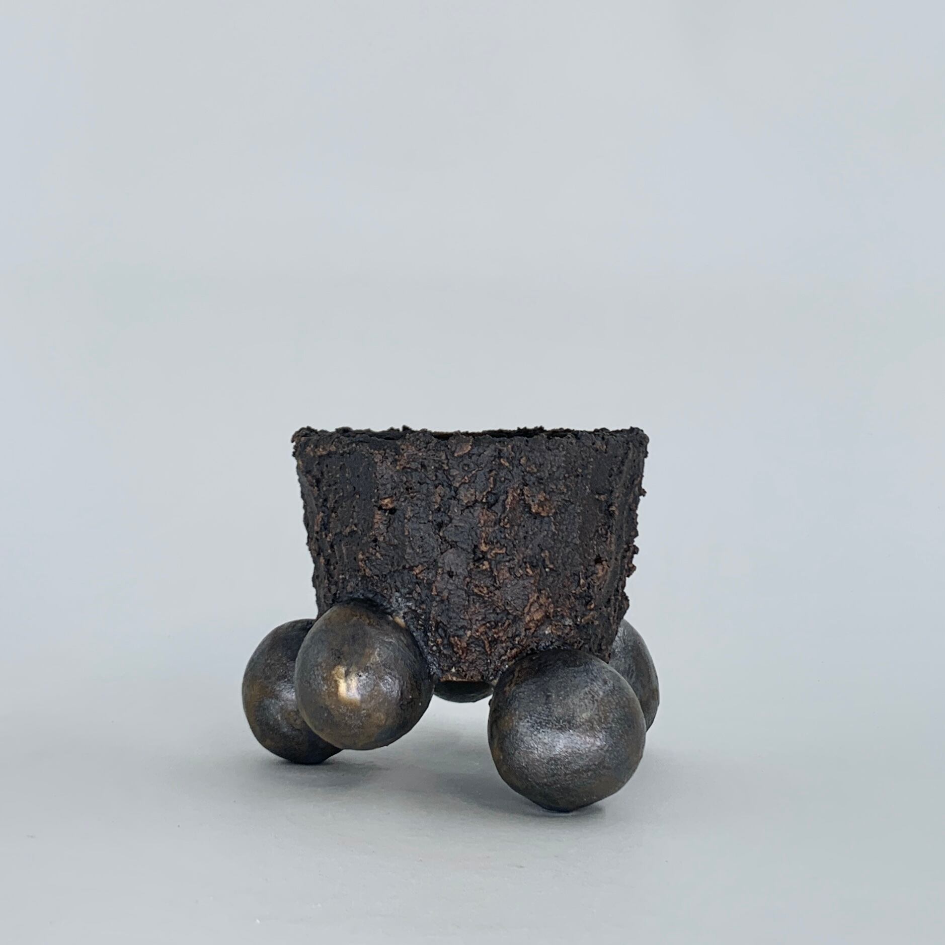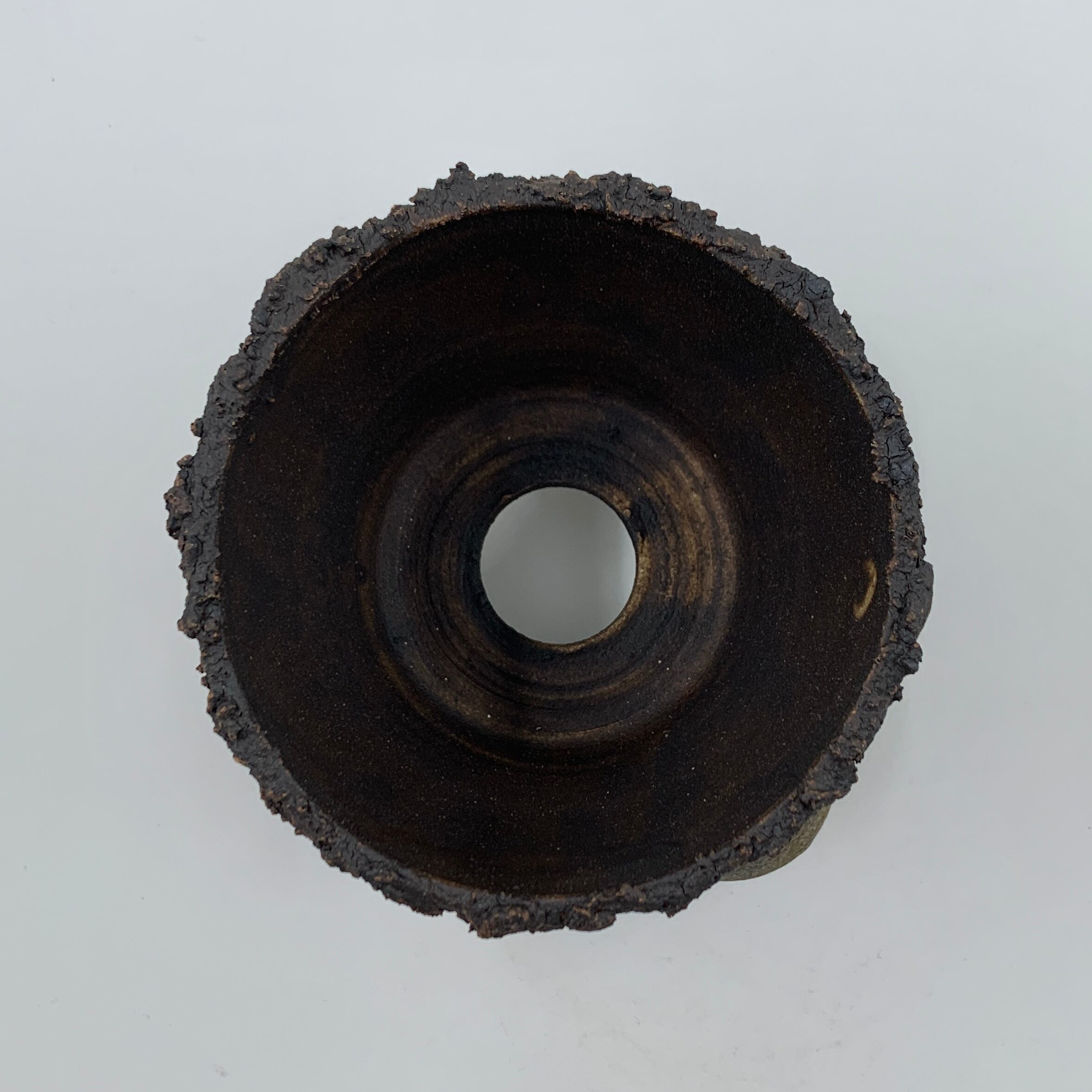 外側に原土を塗った本体は、その荒々しさと釉薬による焦げ茶色の濃淡で、味わい深い質感が生まれています。