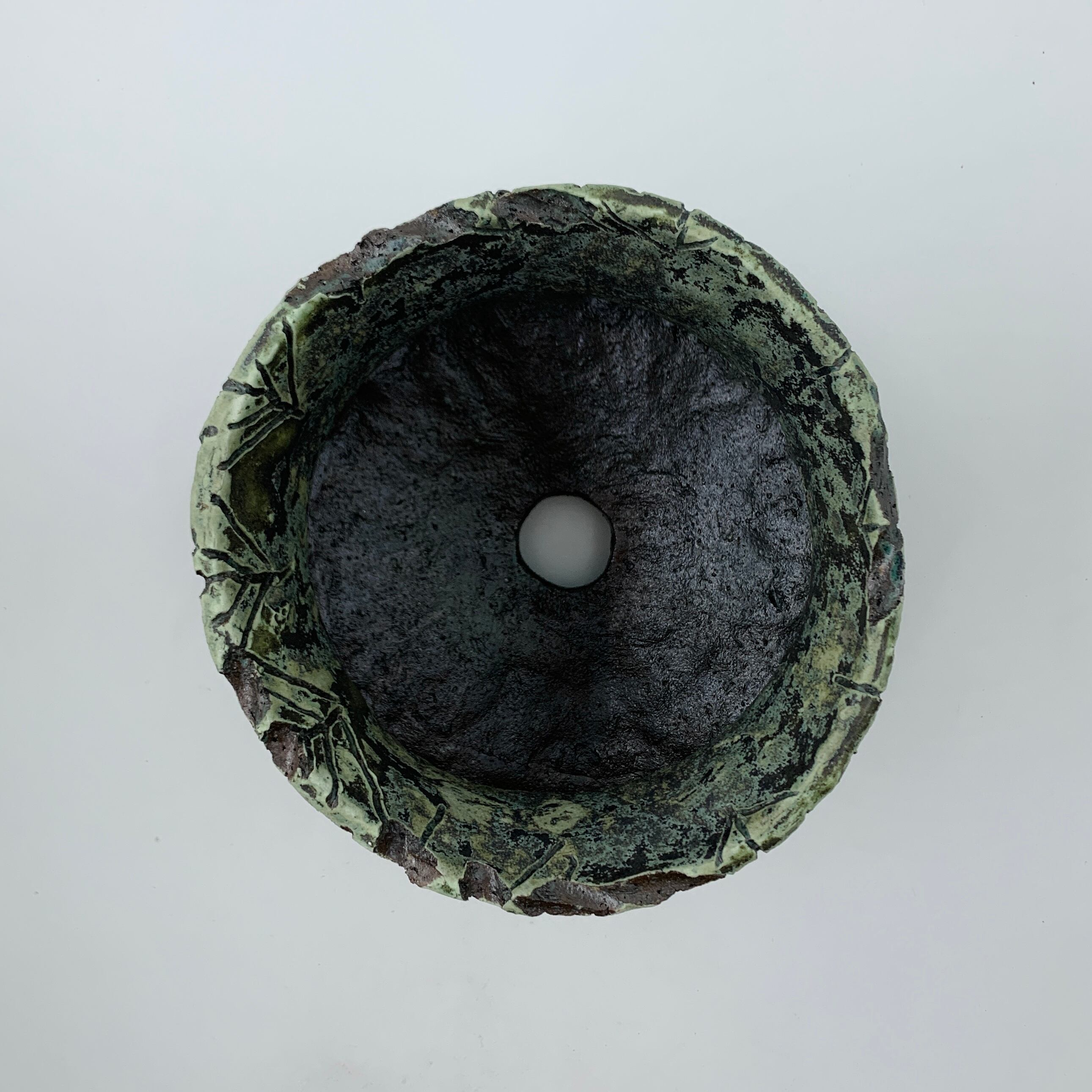 趣のあるグリーンの濃淡、使い込まれたような口縁も特徴です。