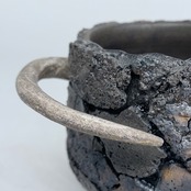 所々アンティークゴールドに染まる表面は、冷え固まった溶岩のようにも見えます。