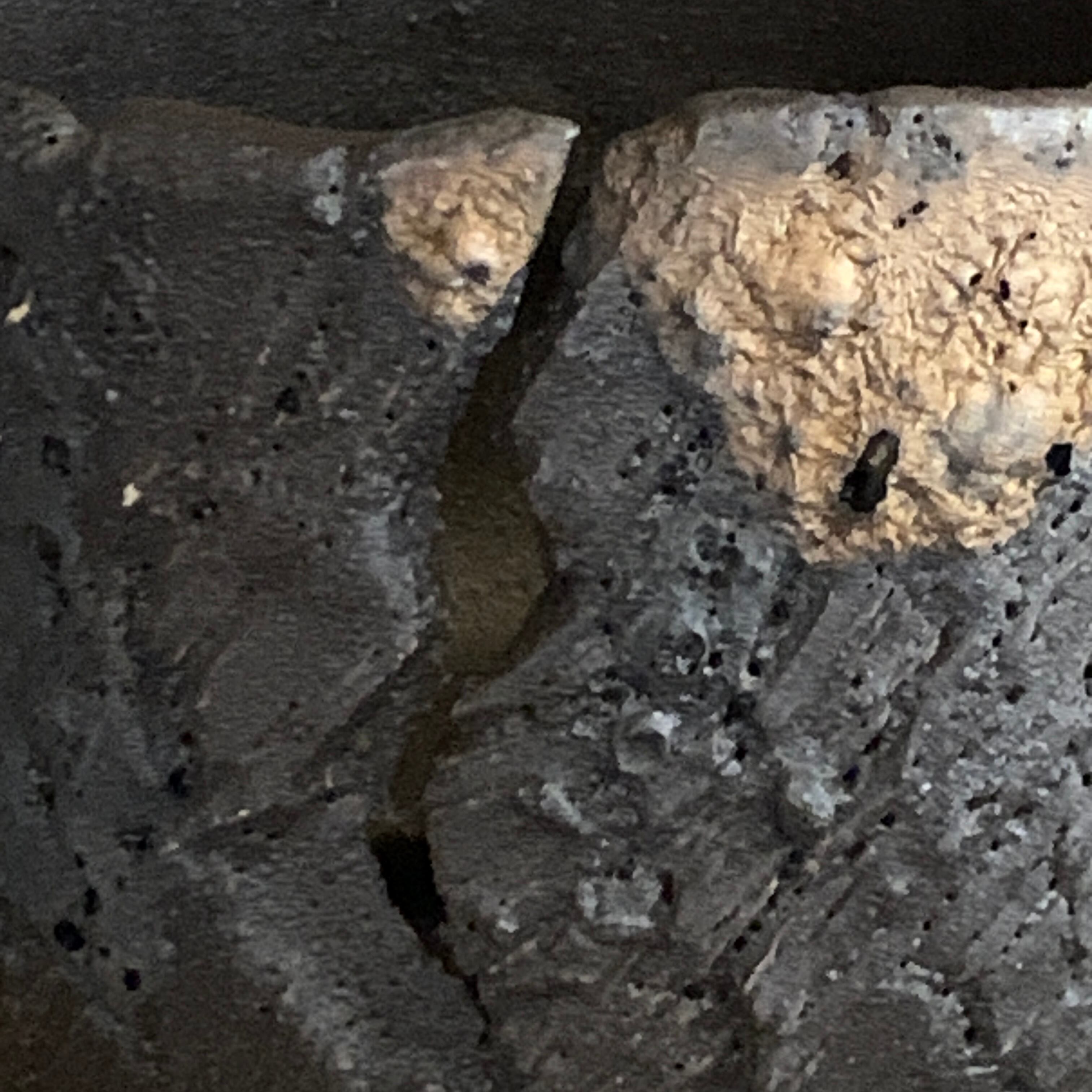 製作時に胴から腰にかけて自然にできた割れ目は、景色としてお楽しみ下さい。